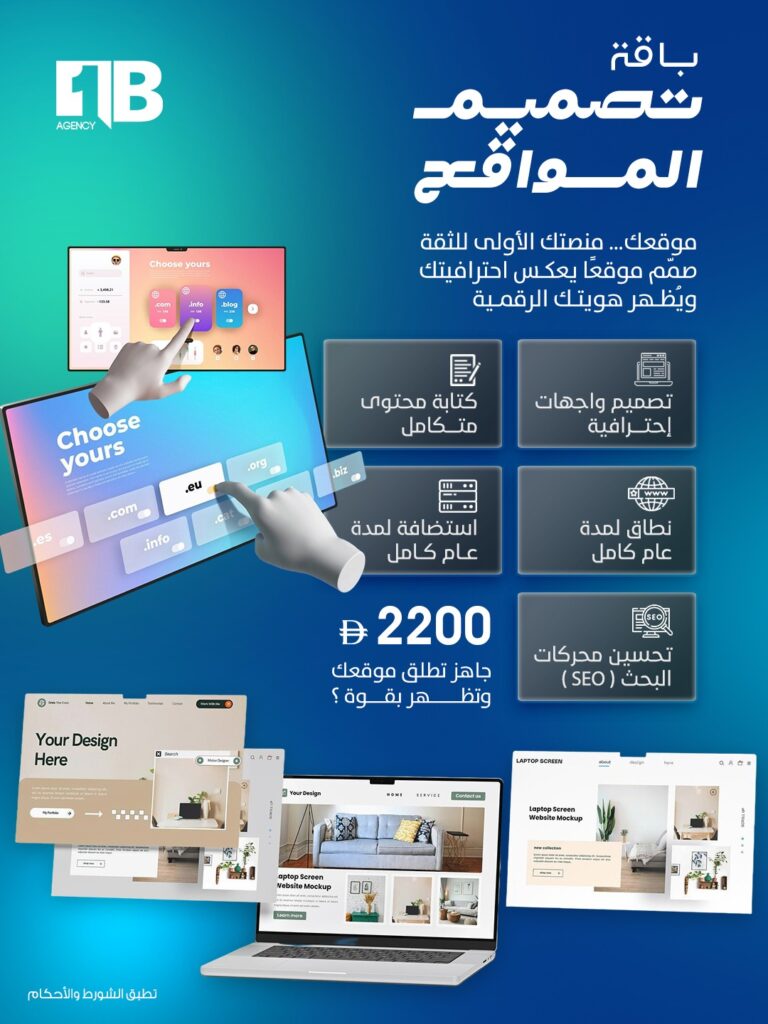 موقعك… منصتك الأولى للثقة صمم موقعا يعكس احترافيتك ويُظهر هويتك الرقمية
